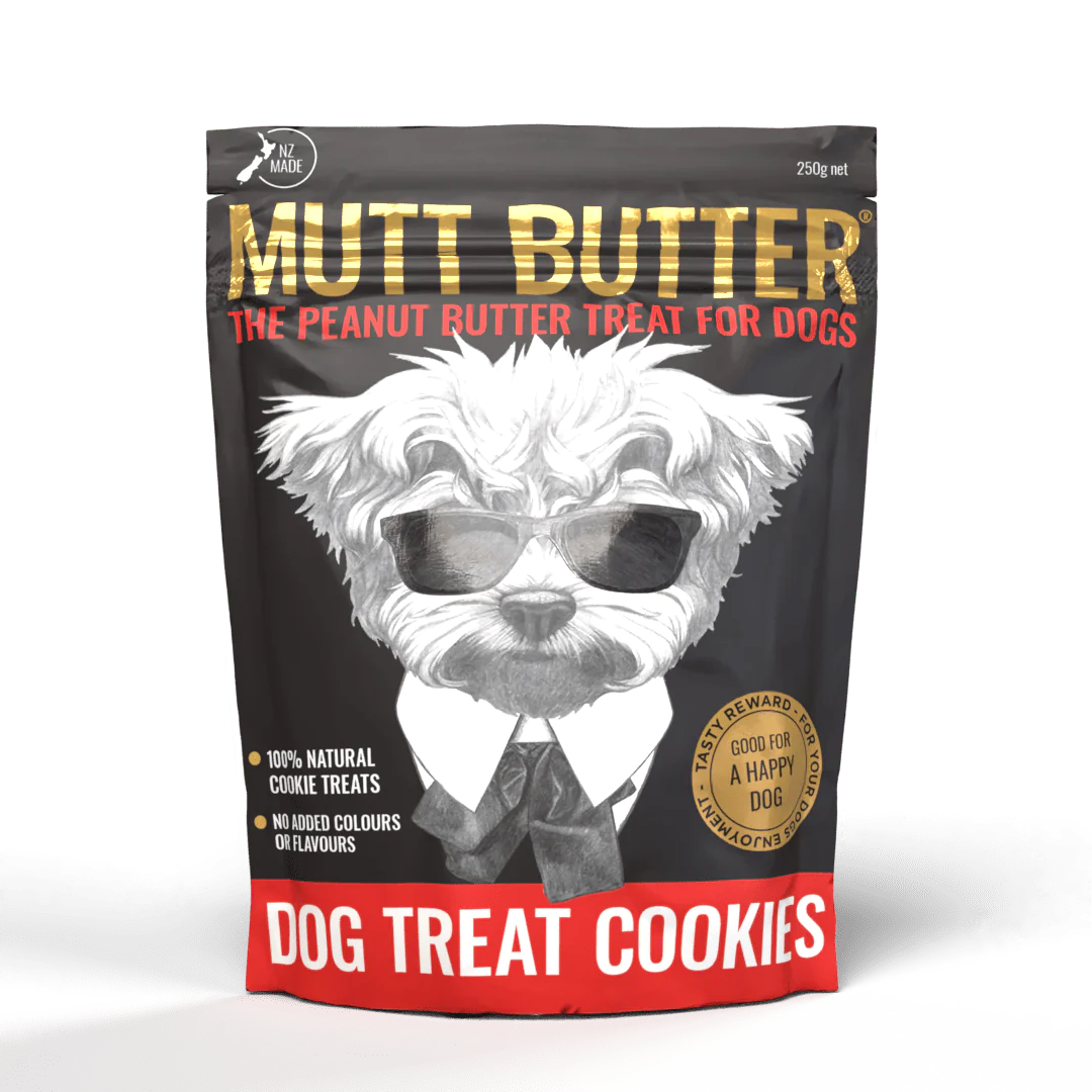 Our Peanut Butter is made fresh here in New Zealand and these treat cookies do not have any added salt, preservatives or artificial colours or flavours. Dogs love our Mutt Butter Peanut Butters, so we knew they would flip out for our Mutt Butter 100% Natural Peanut Butter Cookies.
