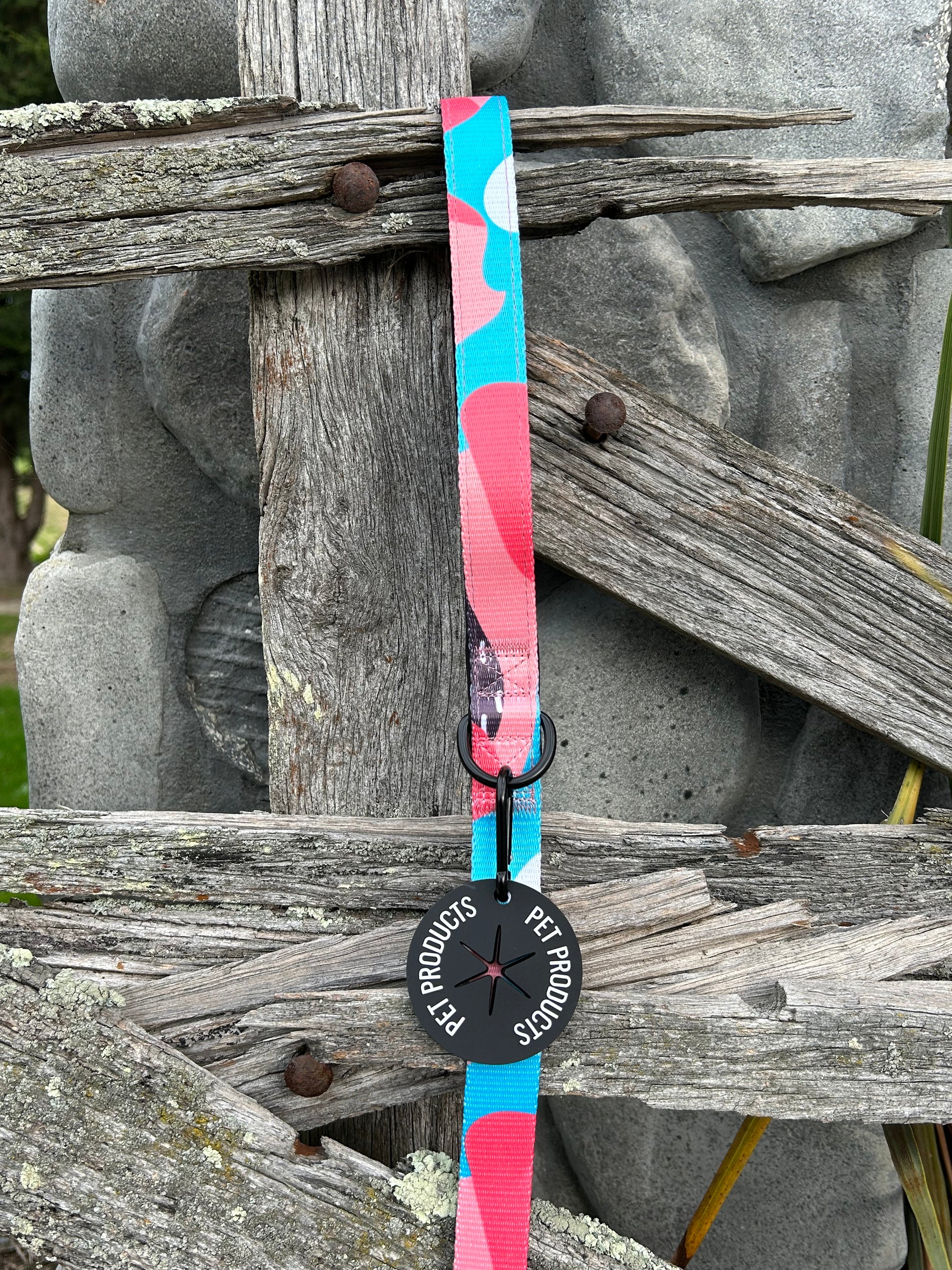 Attach the carabiner to your lead, loop the poo bag through the slots and there you go. No more carrying poo bags!