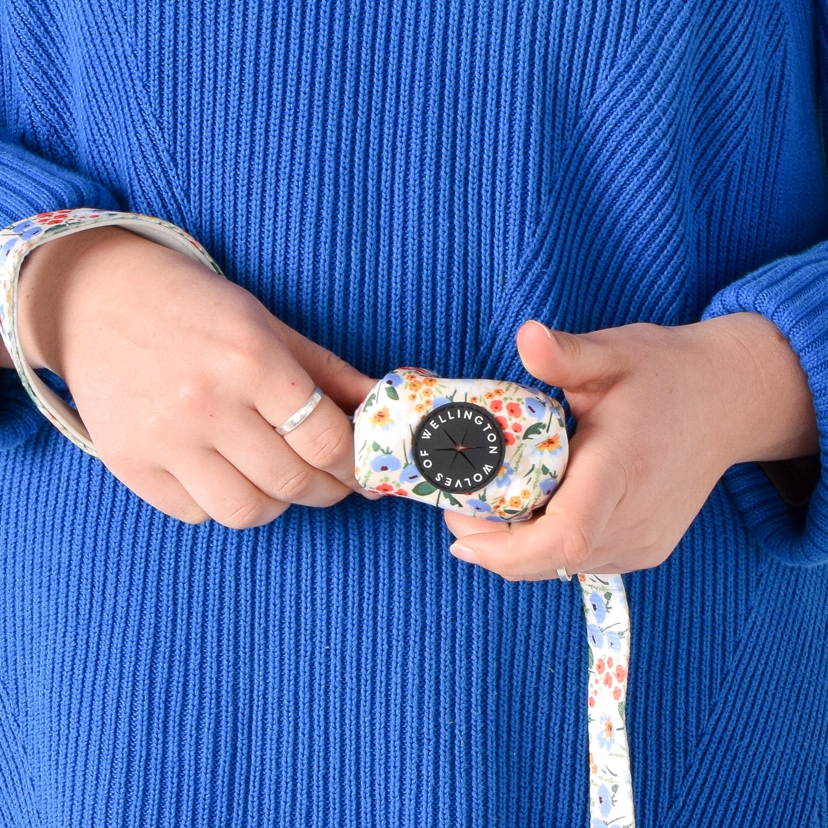 Pretty in Posy! An off-white base featuring delicate florals with pops of blue, red and yellow.